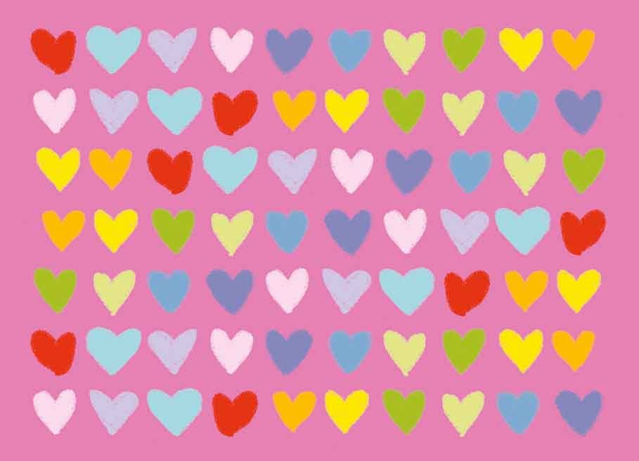 მისალოცი ბარათი ფერადი გულებით