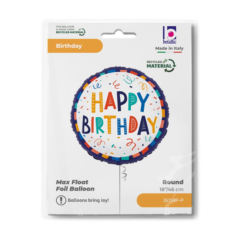 სტანდარტული ფოლგირებული ბუშტი ფერადი დაბ. დღე 35სმ